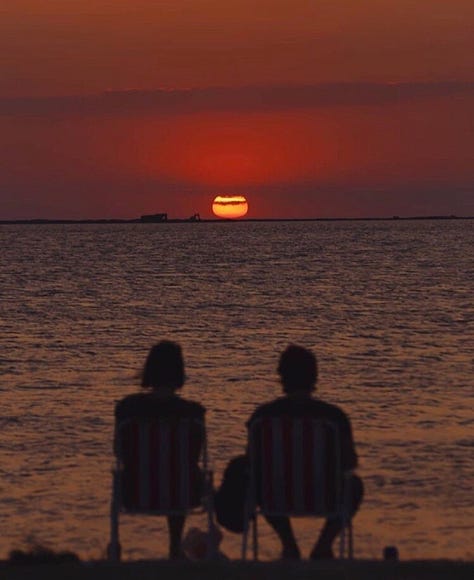 The photo with the two persons watching the sunset also moved me... It is just "another picture" of two people watching the sun... But somehow It made me feel this universal feeling, as if I was there... A kind of timelessness... A shared moment spent together watching the setting sun, with its mind opening ability, full of life and power... A moment in connection with another soul, that could and can and will happen over and over again at any epoch, any place, any life phase... A moment unfolding simultaneously in the physical world and in the realm of universal consciousness... It made me feel as if all the moments ever of people watching a sunset in silent communion were linked, acting like a constant, like an anker in the chaos of life.